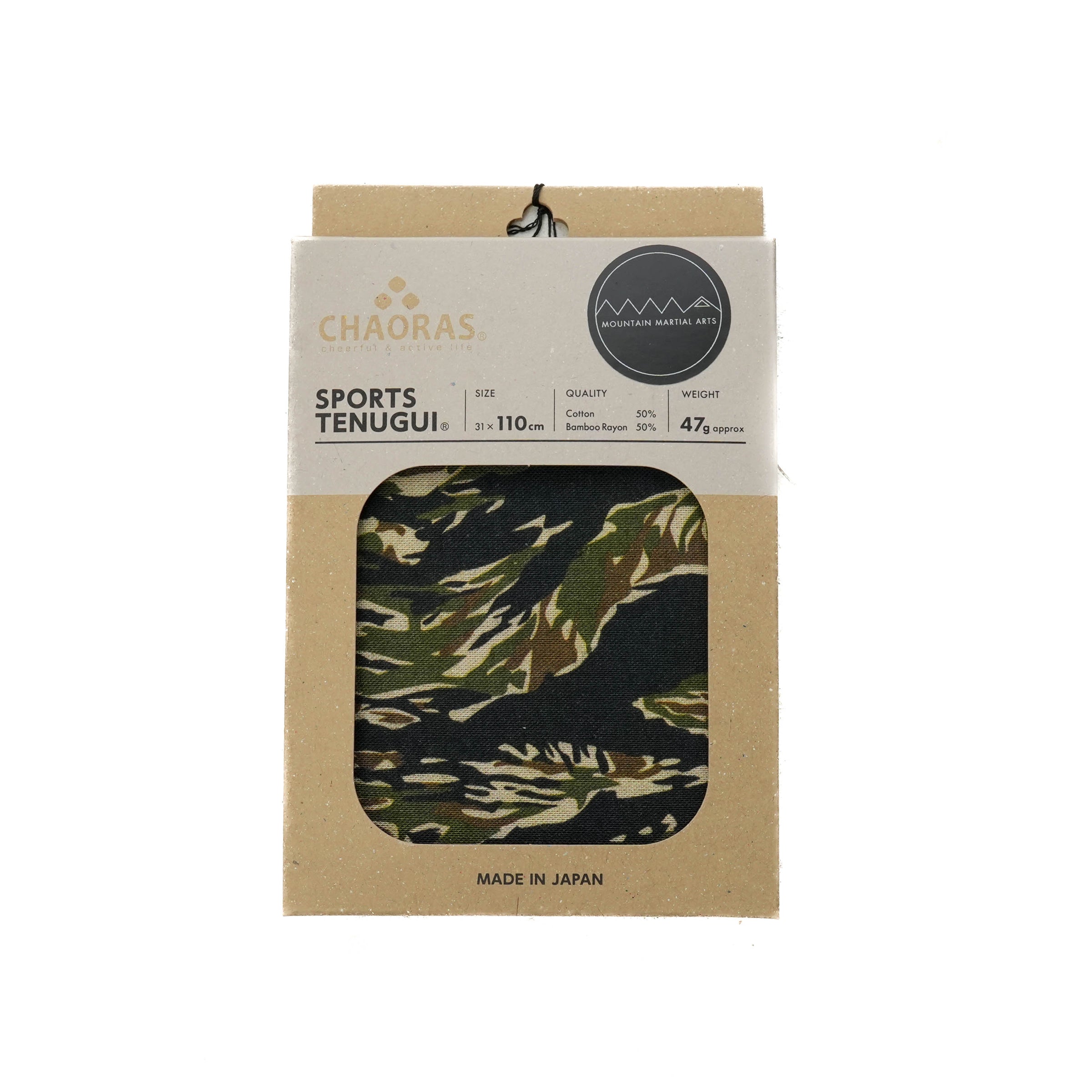 日本の伝統的なものづくりと新しいアイデアを組み合わせたプロダクトを生み出す「CHAORAS®(チャオラス)」とのコラボレーション。リリースする度に完売する人気のスポーツてぬぐいMMA別注バージョン。