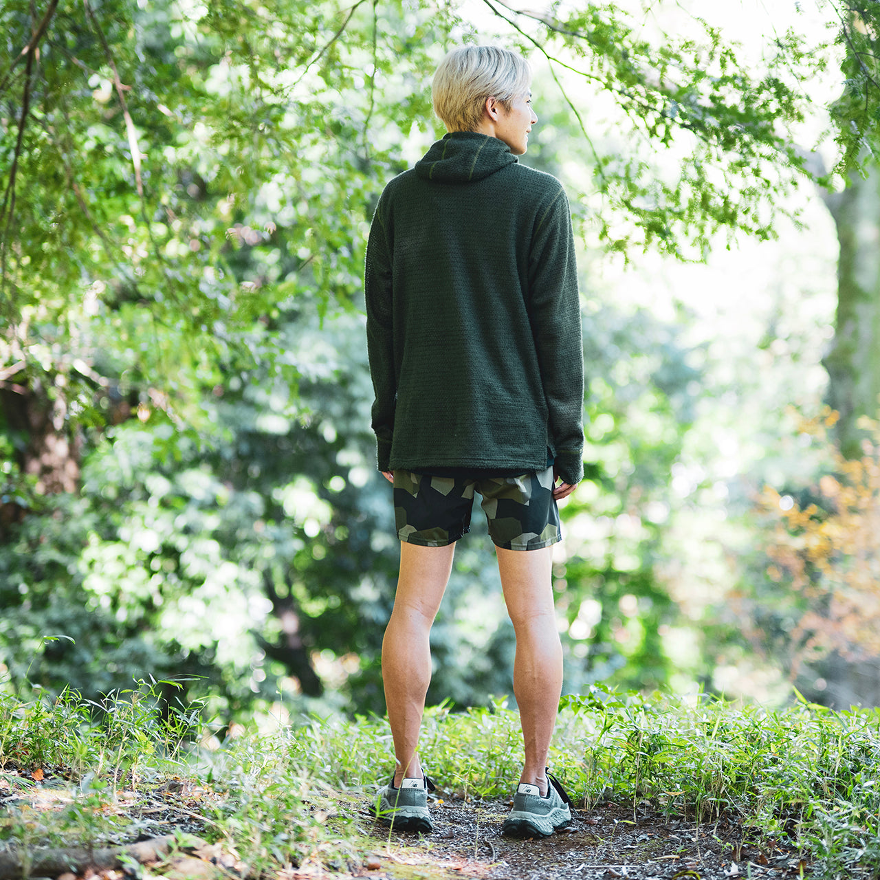 本体素材は、POLARTEC® Alpha Direct。アクティビティ時に保温性をキープしながら、高い通気性で身体の汗や蒸れを放出する超軽量インサレーション。