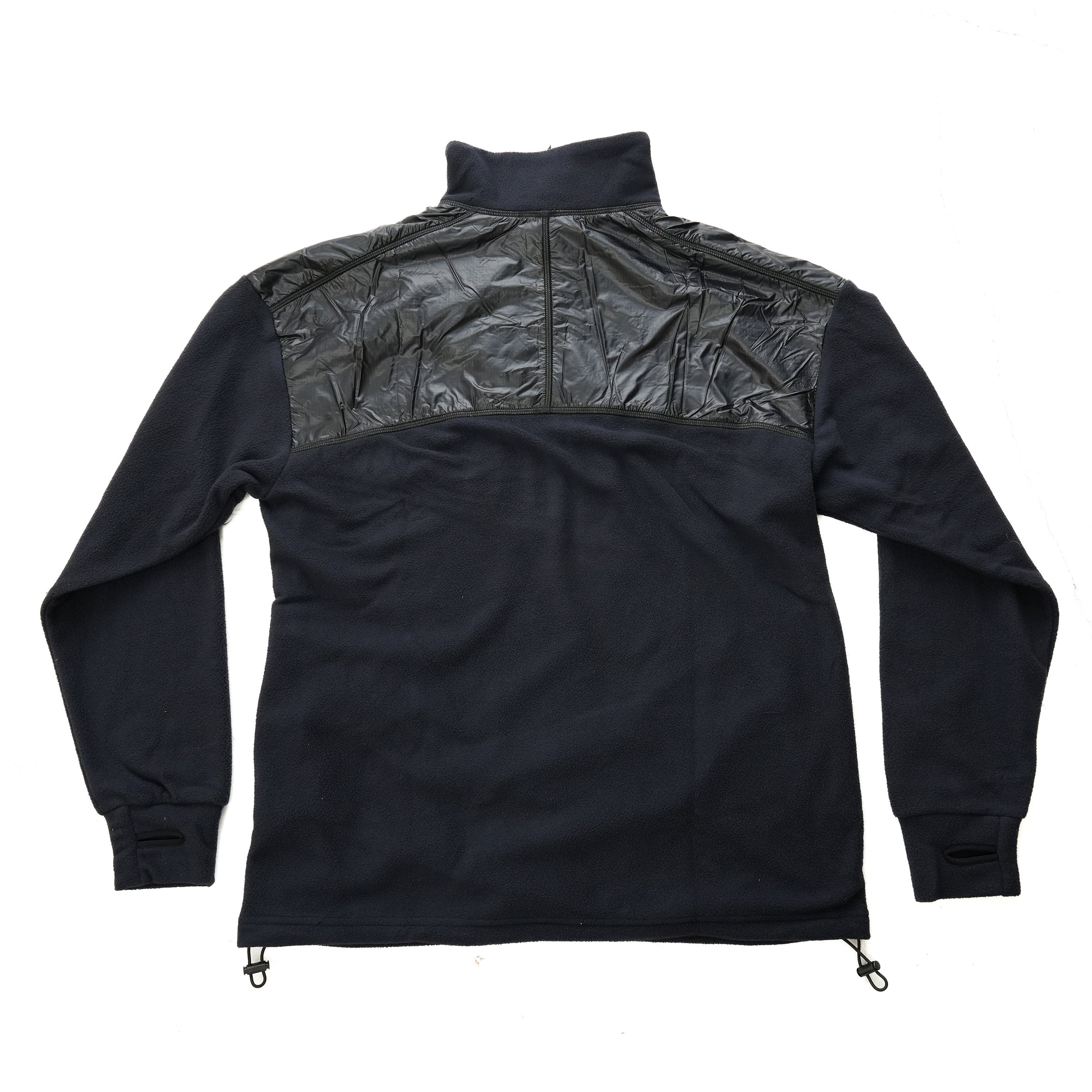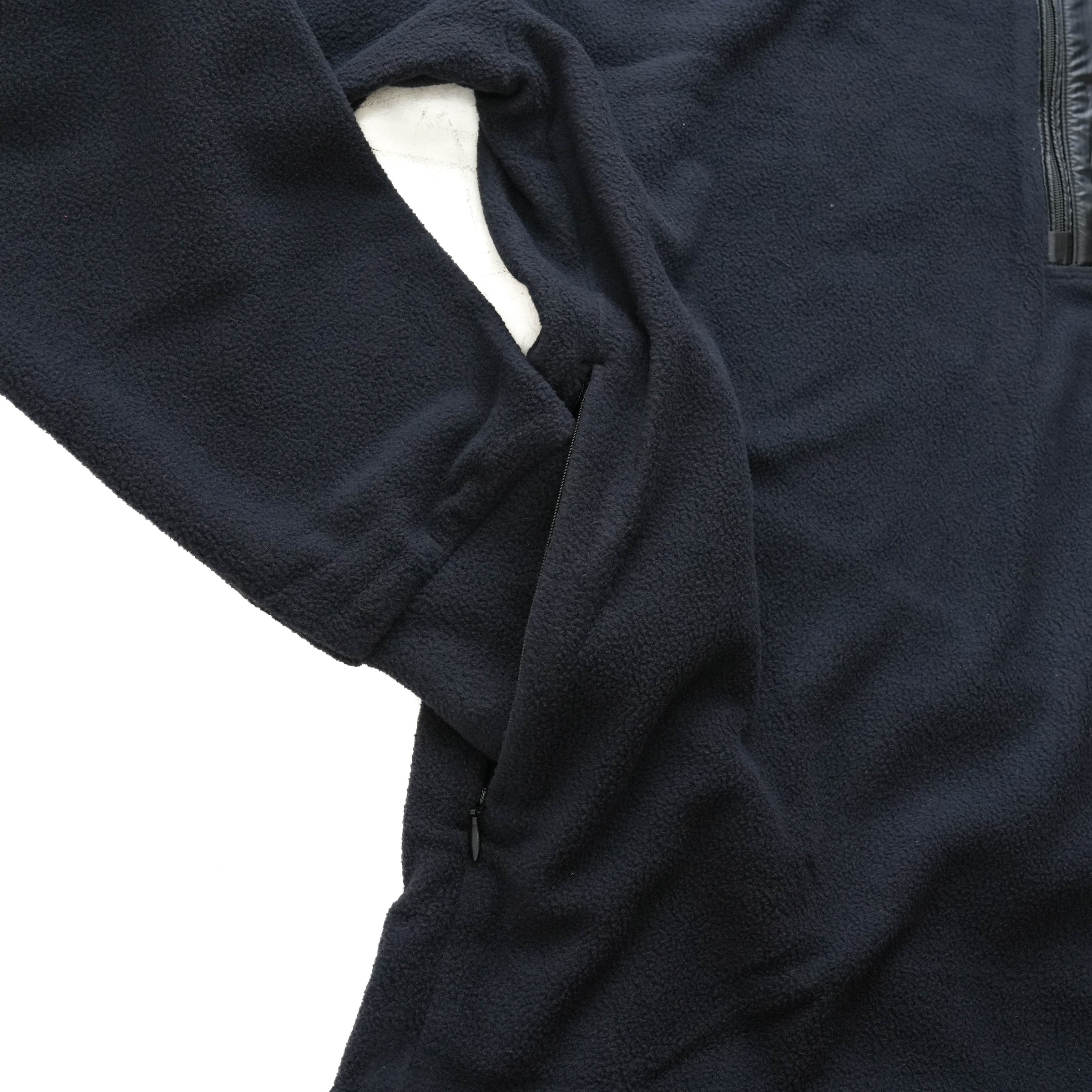 左身頃から肩にかけてナイロン素材で切り替えることで野暮ったいイメージのフリースにメリハリをプラス。