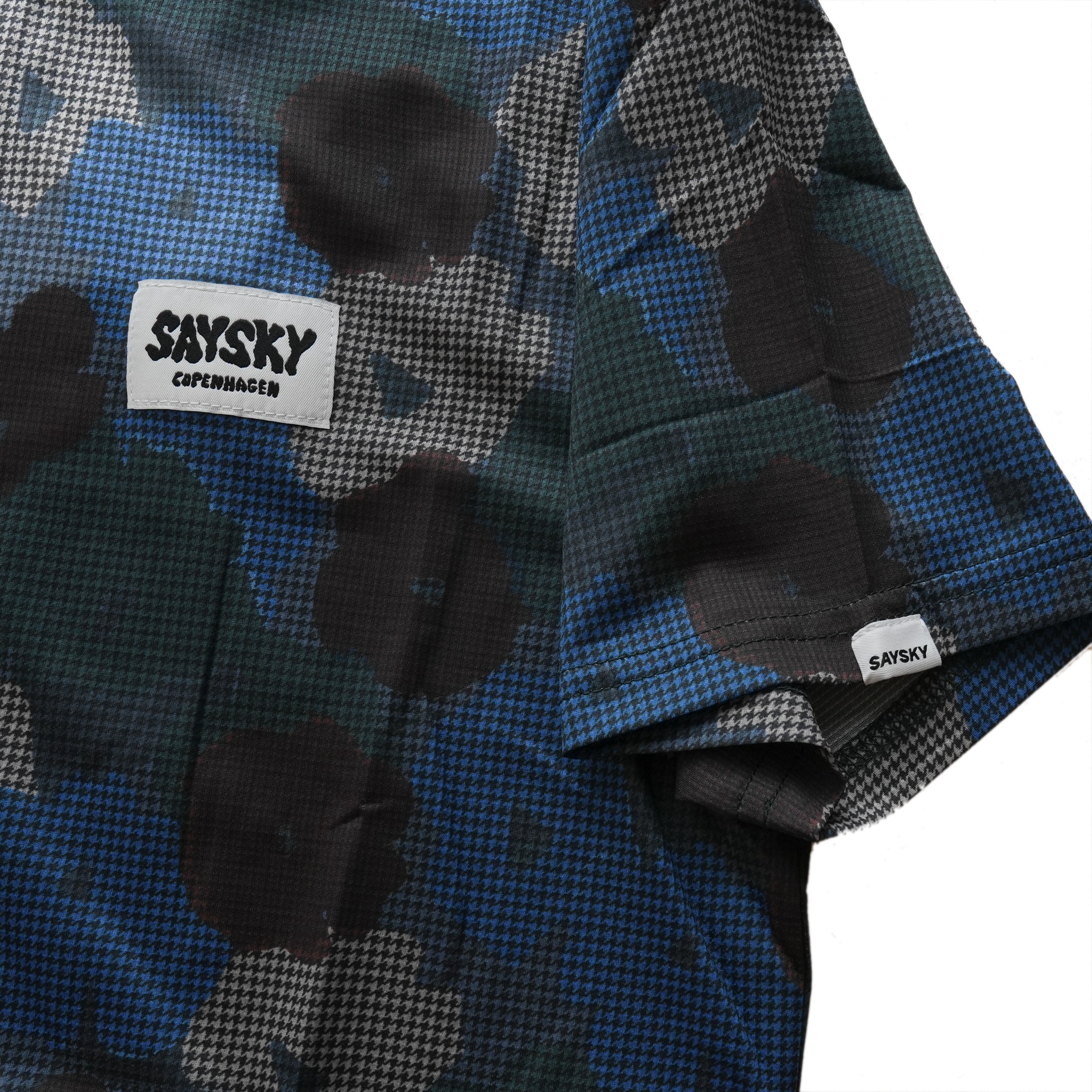 SAYSKYのCOMBATTシャツは、全面にフラワーカモフラージュプリントを施したランニングTシャツです。吸湿速乾性に優れ、ランニング中ずっと高いパフォーマンスを発揮します。特殊な構造により生地が肌に張り付くのを軽減。暖かい気候でのランニング、重ね着、レース当日のウェアとして最適です。