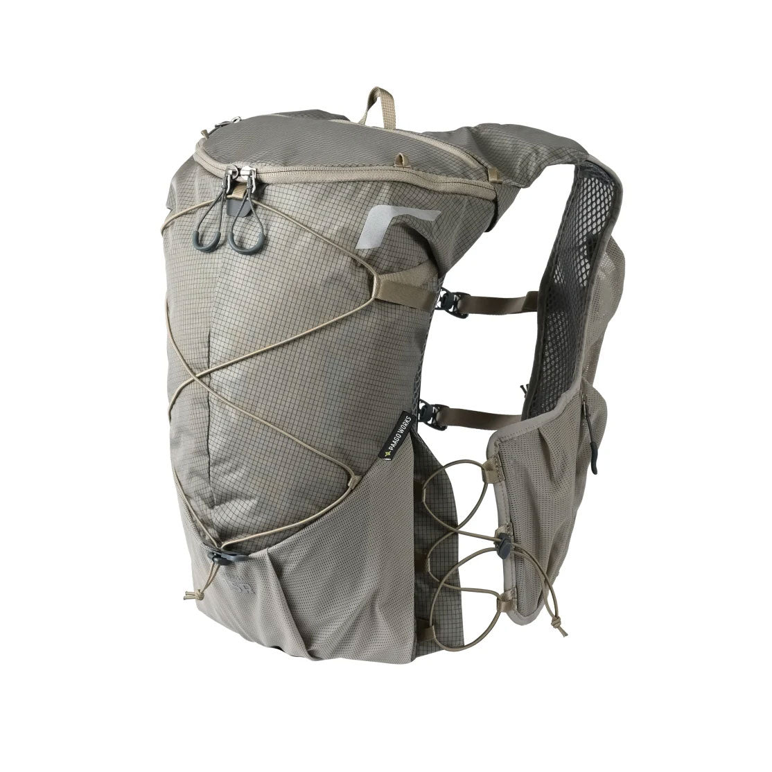 サイドアジャスターには6点式のバンジーコードを採用し、抜群のフィット感と通気性を実現。ウエストにあるドローコードは片手で引くことができるので、ランニング中でも簡単にホールド感を調整できます。