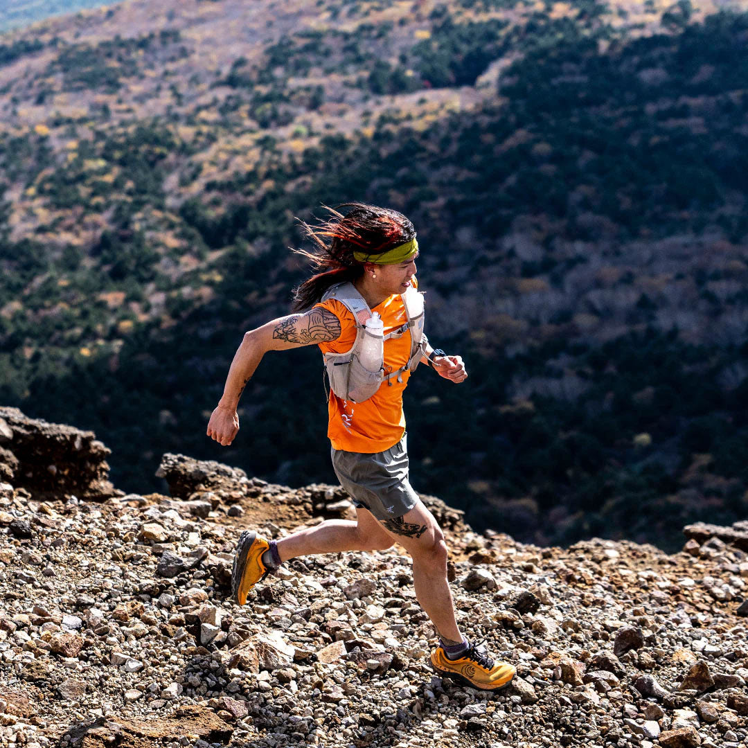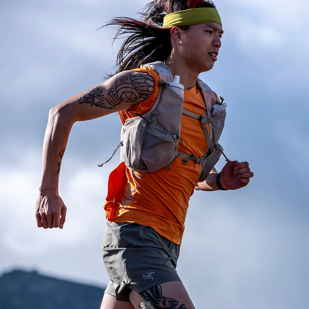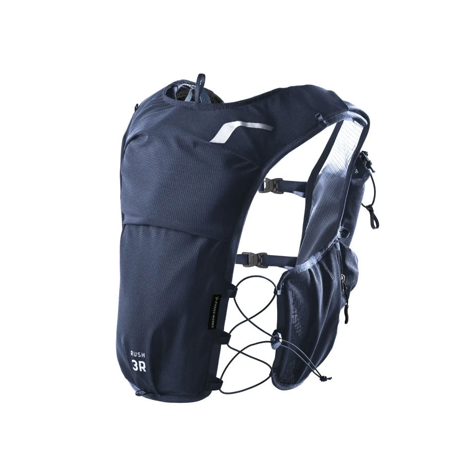 ランナーからの声をもとに、RUSHに最小容量のレーシングベストが登場。腕の可動を妨げない新設計と、激しい運動時でも熱がこもりにくい素材によって、スピードの出るショートレースに最適なモデルを開発しました。