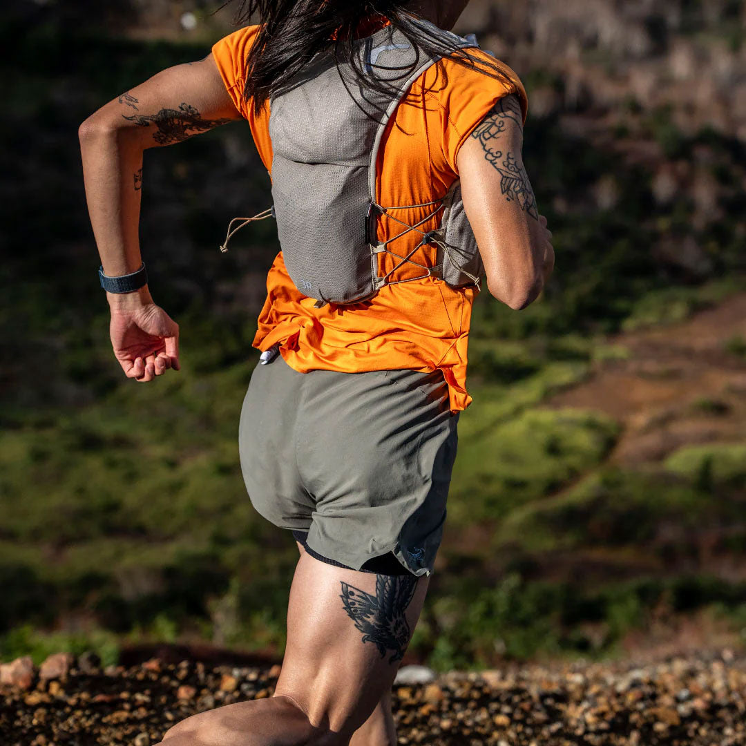 ランナーからの声をもとに、RUSHに最小容量のレーシングベストが登場。腕の可動を妨げない新設計と、激しい運動時でも熱がこもりにくい素材によって、スピードの出るショートレースに最適なモデルを開発しました。